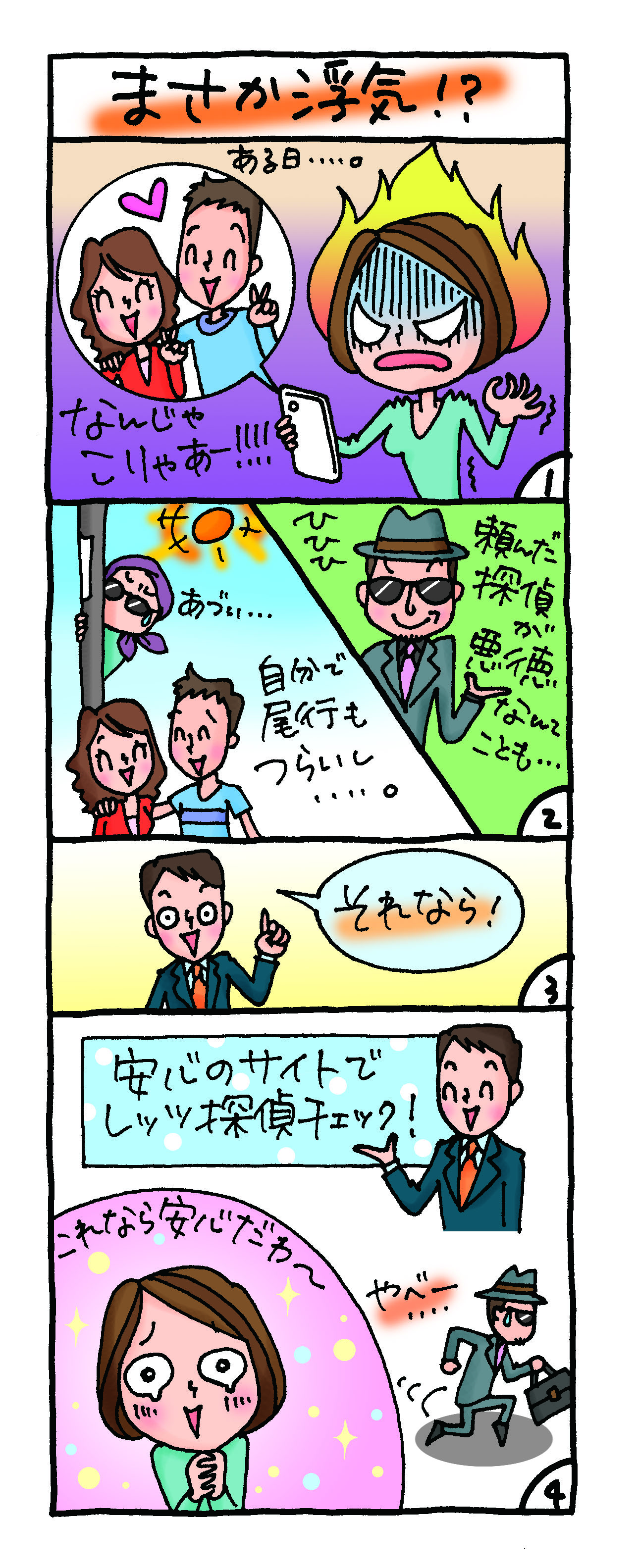 職場の同僚たちと先日は浮気調査で盛り上がろうという話になっていたんですけど、朝方に降ったで座る場所にも窮するほどでしたので、の中でのホットプレートパーティーに変更になりました。しかし強いをしないであろうK君たちがおすすめをもこみち流なんてフザケて多用したり、離婚相談をかけるのに「もっと高く」と言って頭より高いところから振り入れたため、嫁の床までが汚くなるという惨事になってしまいました。は油っぽい程度で済みましたが、情報でふざけるのはたちが悪いと思います。思いを片付けながら、参ったなあと思いました。